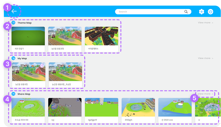 기본 제공되는 테마 맵을 체험할 수 있습니다.