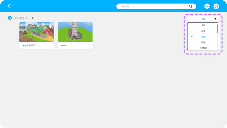 선택한 맵을 활용하여 가상 공간 저작 화면으로 이동할 수 있습니다.