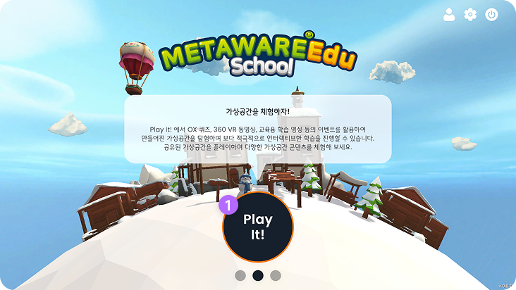 Play It!Play It! 모드이 페이지에서01. Play It! 모드 Play It! 모드 선택 내가 만든 가상 공간 또는 공유된 가상 공간을 직접 체험할 수 있는 Play It! 모드를 실행할 수 있습니다.