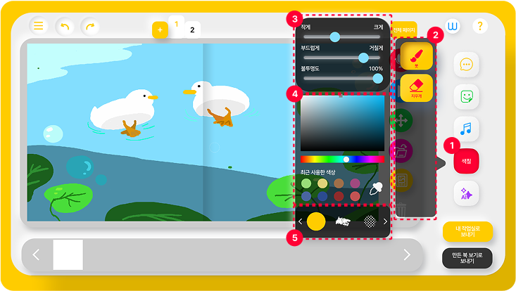 원하는 색상 및 최근 사용한 색상을 선택하여 색칠할 수 있습니다.