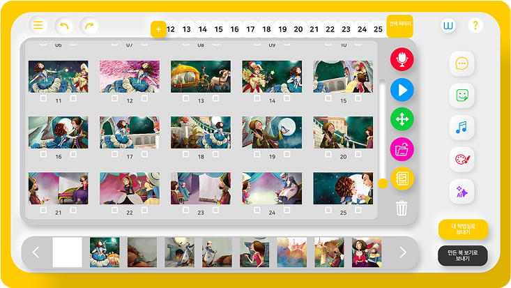 저장 및 삭제하기만든 북 보기로 보내기이 페이지에서02. 만든 북 보기로 보내기 1. 만든 북 보기로 보내기 버튼 북커버 지정 팝업창에서 '예'를 선택해 주세요. 북 커버 설정하기 전체 페이지에서 커버로 사용할 이미지를 선택할 수 있습니다.
