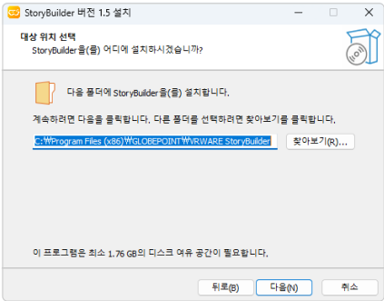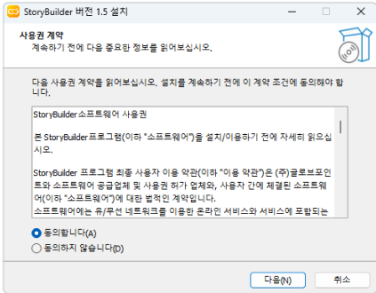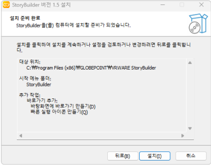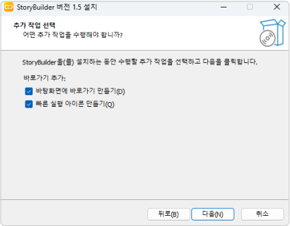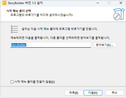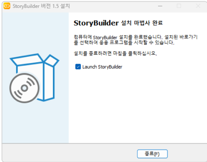 (8) 'Launch StoryBuilder'가 체크되어 있으면 종류 클릭 후 프로그램이 자동으로 실행됩니다.