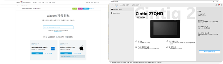 www.wacom.com/drivers 에 접속하여 드라이버를 설치합니다.