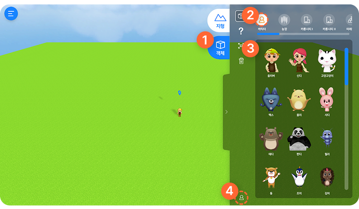 오브젝트의 카테고리를 선택해 오브젝트 리스트를 확인할 수 있습니다.