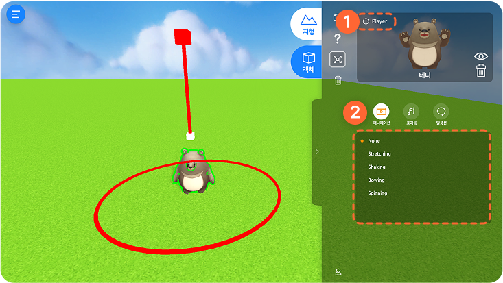- 플레이어로 선택된 캐릭터에는 애니메이션을 설정할 수 없습니다.