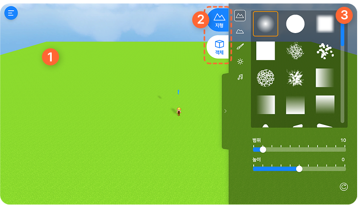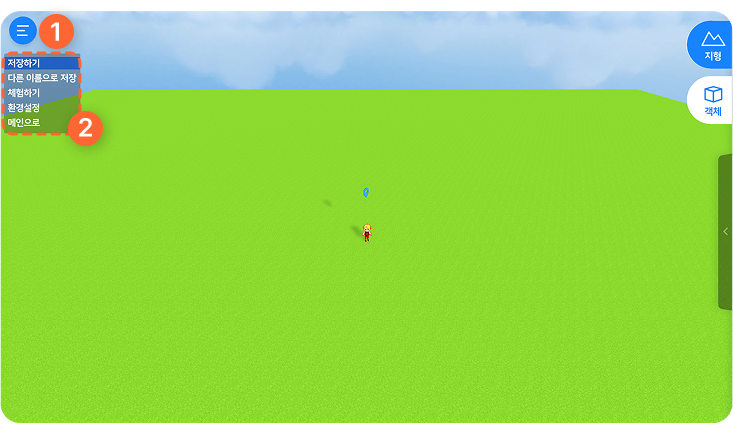 • 체험하기 : 만든 맵을 체험합니다. (* 체험하기 전에 저장 필수)