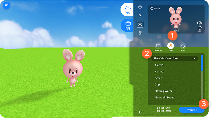 선택한 오브젝트의 효과음을 설정할 수 있습니다.