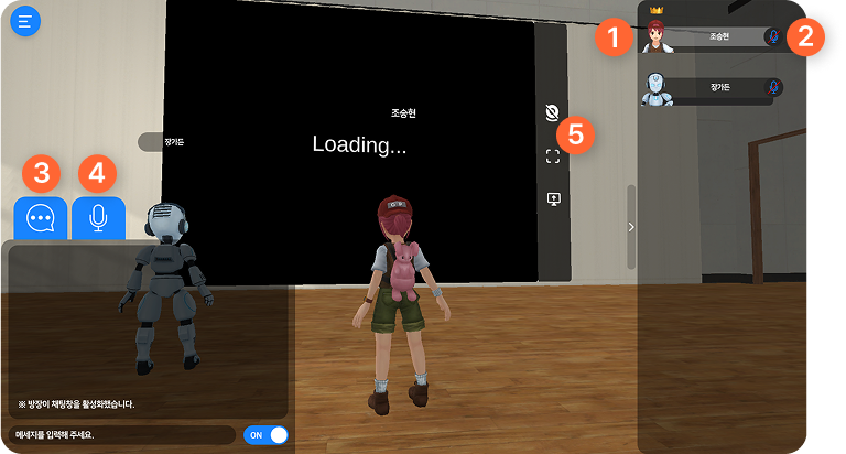 채팅을 활용해 소통할 수 있습니다. (방장 : 채팅 활성화/비활성화 설정 가능)
