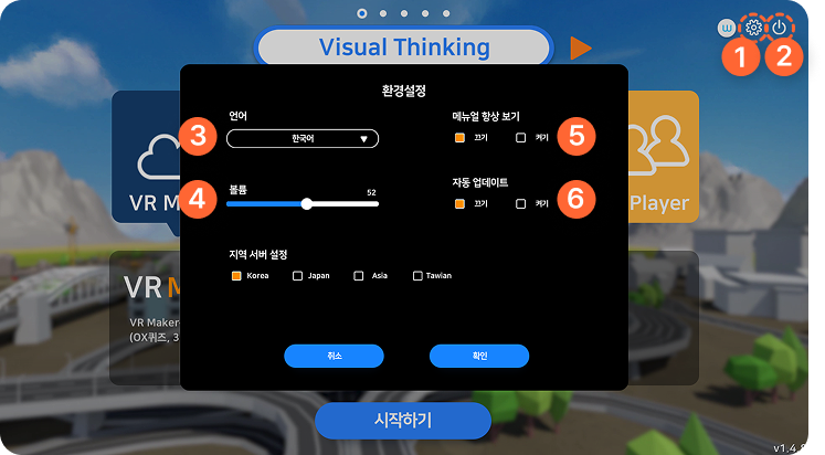 프로그램 내 BGM과 효과음의 볼륨을 조절할 수 있습니다.