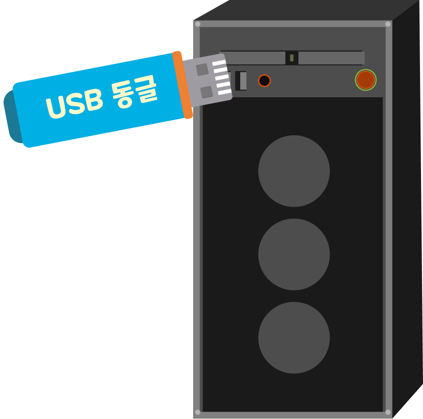 1. 패키지에 들어있는 [USB동글]을 PC에 연결합니다.
