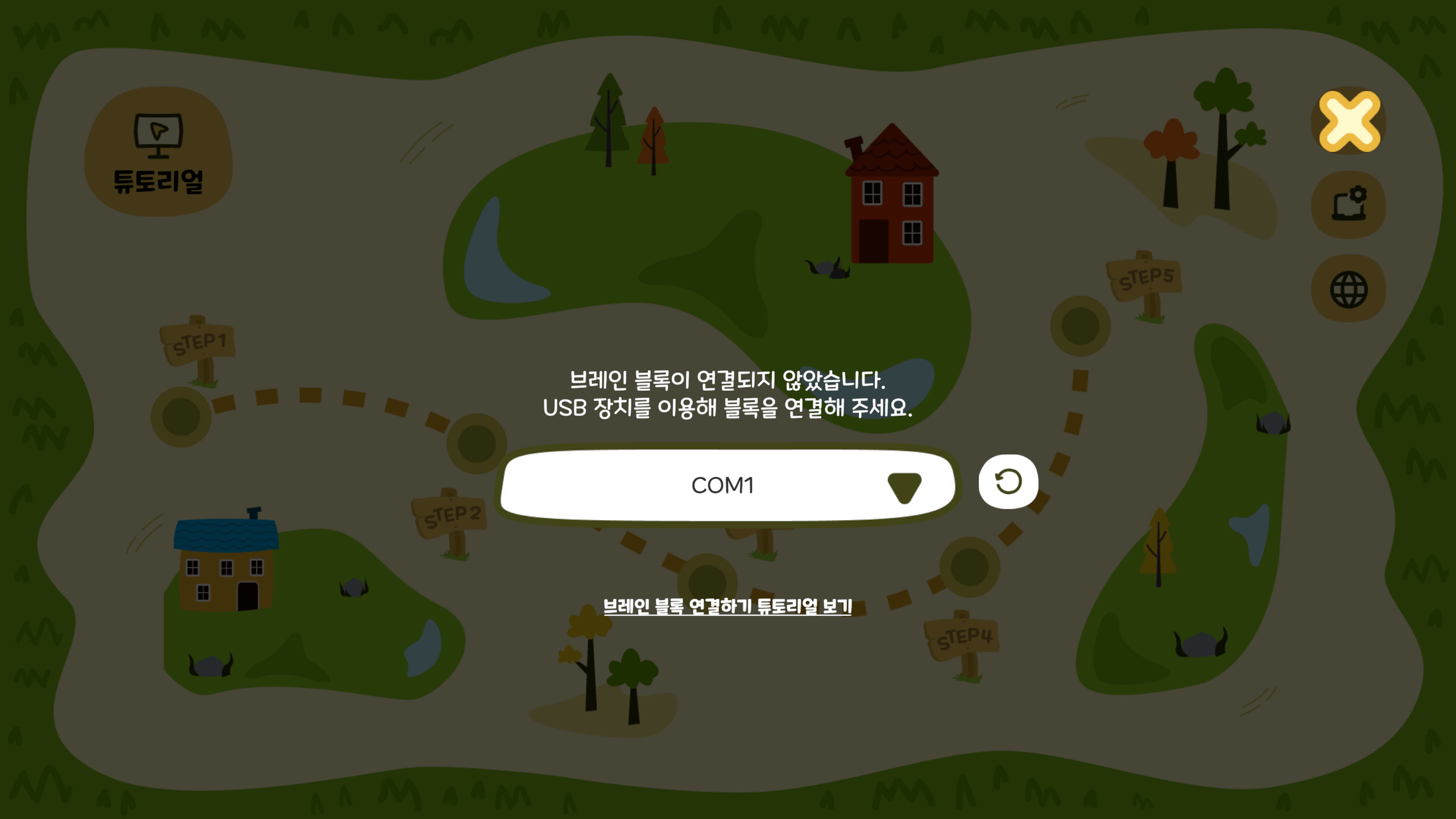 1. 브레인 블록의 전원을 켭니다.