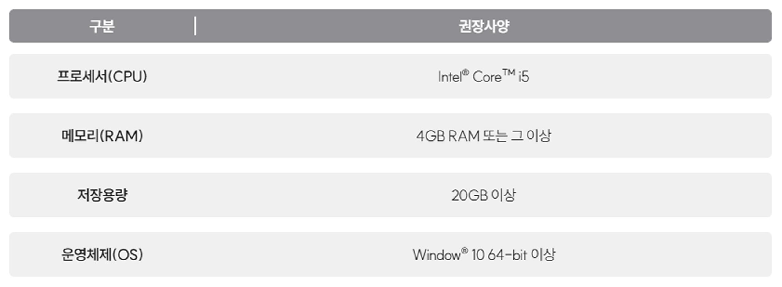 시작하기프로그램(최소사양 및 권장사양)이 페이지에서02. 프로그램(최소사양 및 권장사양) [PC 버전] 프로그램 실행 시 PC버전 권장사양을 확인합니다. 권장사양과 비슷한 성능의 기기를 이용해 프로그램을 원활하게 사용하실 수 있습니다.
