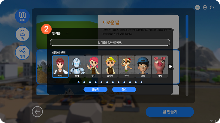 팀 이름과 플레이할 캐릭터를 선택하여 팀을 만들 수 있습니다.