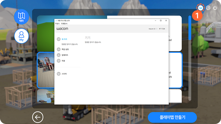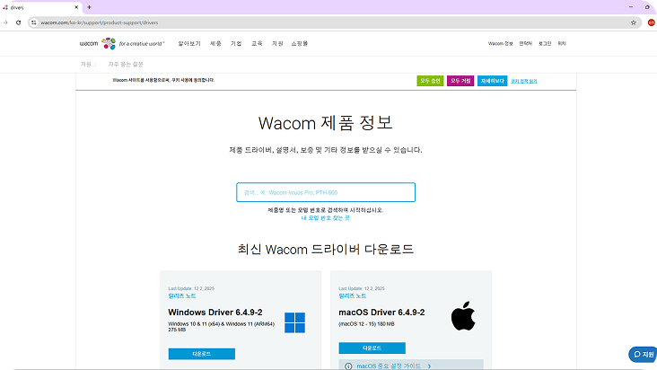 시작하기와콤 드라이브 설치이 페이지에서05. 와콤 드라이브 설치 1. 와콤 드라이브 와콤 드라이브 미 설치 시 설치 팝업이 나타납니다. 2. 와콤 드라이브 설치 설치 선택 시 와콤 드라이브 설치 경로로 이동됩니다. 1. 와콤 드라이브 와콤 펜 및 리모컨 등을 설정할 수 있습니다.